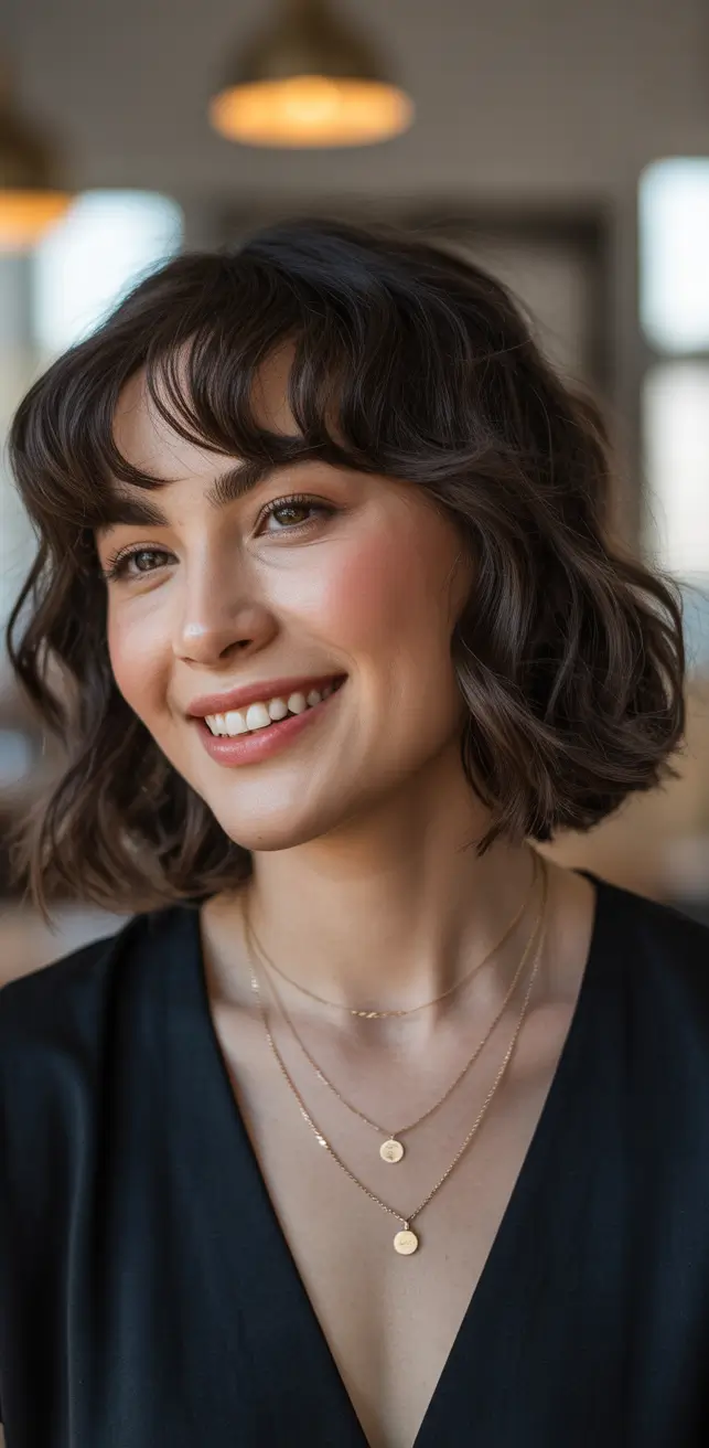 Picture a Bob that whispers “bonjour.” This one features a wispy micro-fringe and soft, swirling waves—perfectly sweet, effortlessly chic, and just the thing for curling up in a cozy sweater. It nibbles just below the jaw, keeping the length in short territory without the harsh cloak of blunt cuts. Layered texture breaks up the look, keeping you flawless even on mornings when you skip the foundation. Seriously—this is the fall-winter haircut that delivers show-stopping glam without the show-stopping effort.