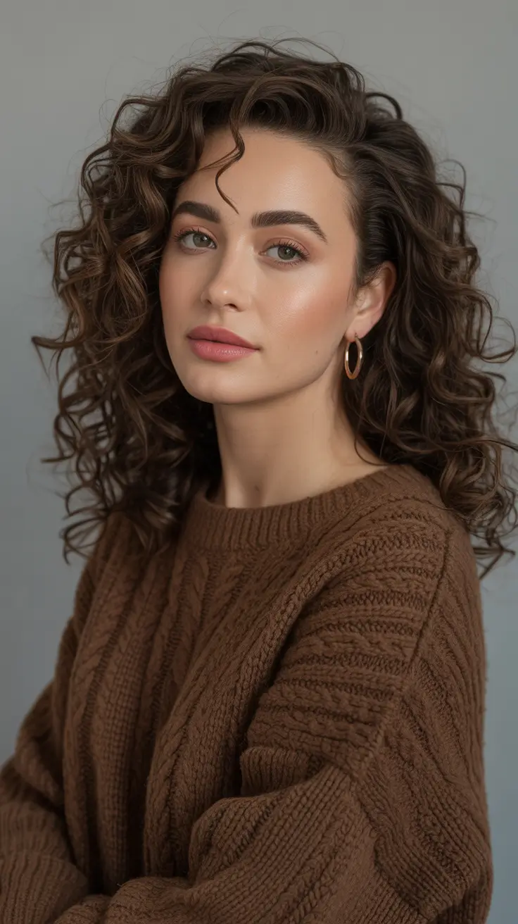 I’m starting with a shoulder-grazing curly lob that keeps natural texture front and center. The lob hits the collar bone and is layered lightly, so the curls don’t form a triangle. The hairline is a bit soft and messy and the ends are just below the brows and the cheeks. It is a cute winter hairstyle for medium hair. It is also perfect for effortless styling on busy mornings.