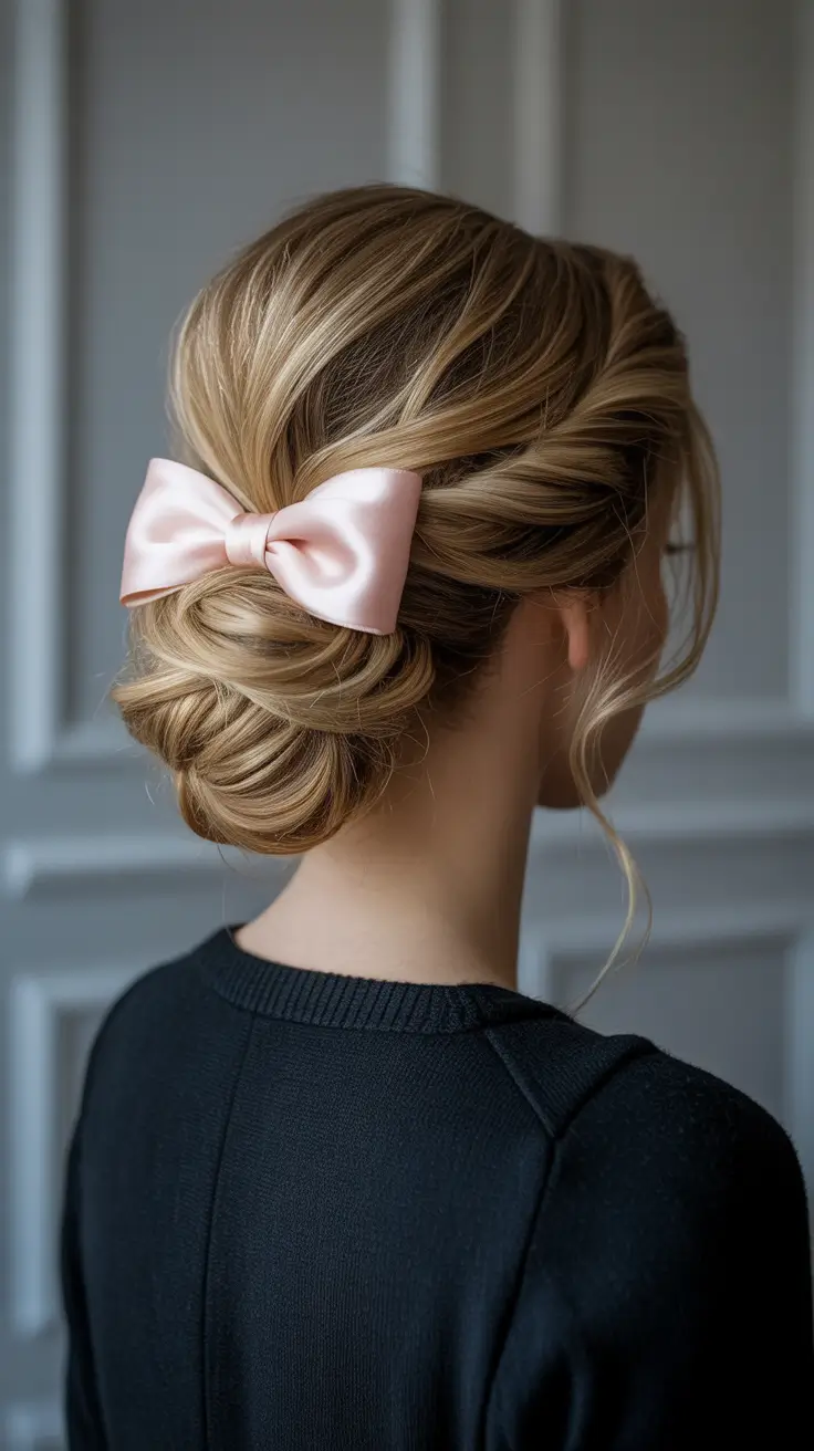 This low bun stays on the softer side, with twisted, and gently put together at the finish point, chignon, with the added wrap of a satin bow, adding a touch of sweetness without overdoing it. The gentle structure helps the scalp and ends from any friction which is perfect for the month of February. Definitely, one of my most liked cute winter hairstyles for Medium hair, and the twist adds a touch of subtle decoration without the commitment of full braids.