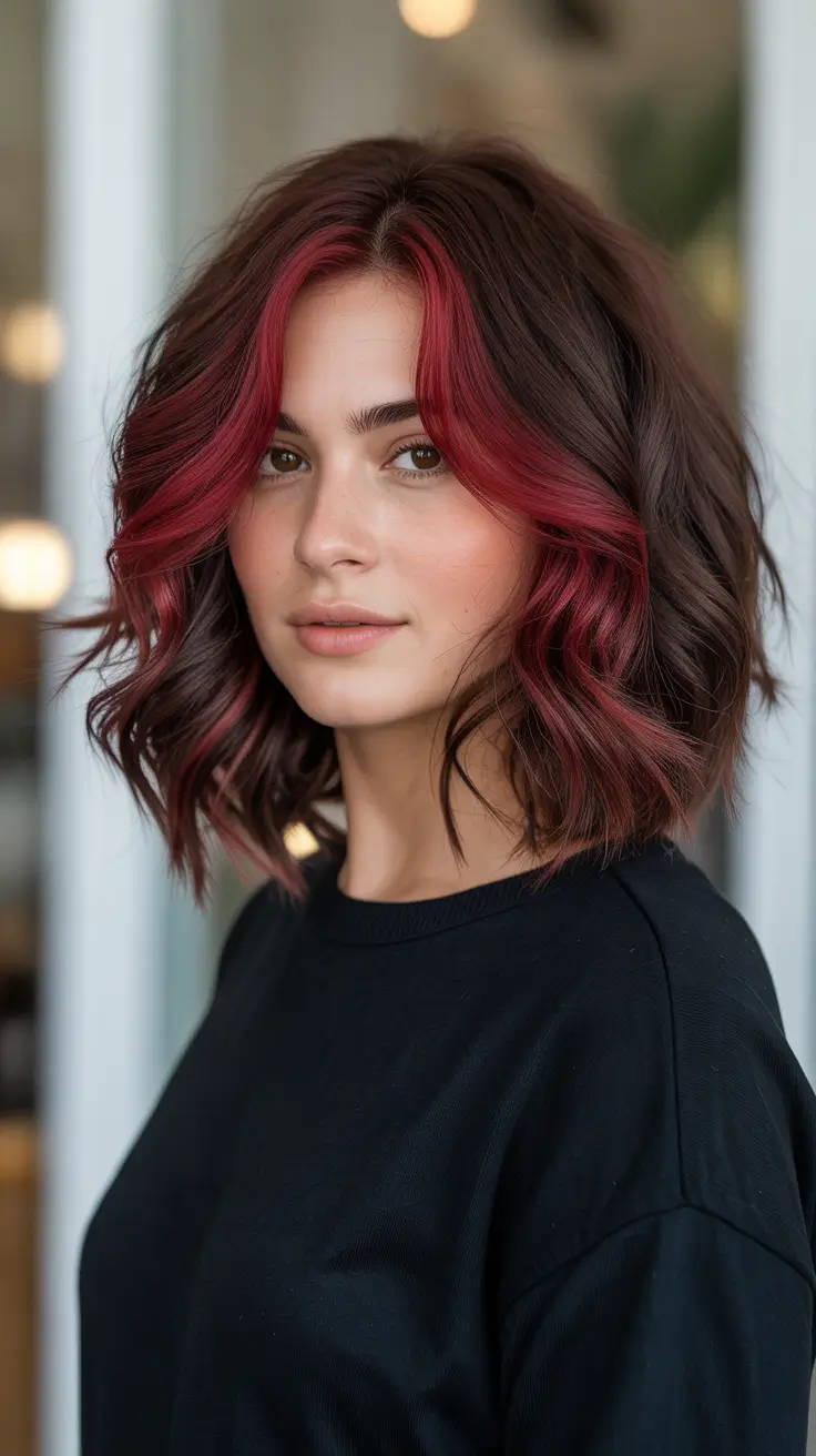 This appearance takes a darker brunette foundation and pulls the soft, light pinkish highlight through the lengths more so towards the face and ends. It remains sleek, partially based on items with brunette naturalness, yet the berry undertones give it a playful switchover, which will feel so 2026. It is loose and romantic, the colour has that multi-tone gloss where you can detect a trace of wine, cherry and chocolate under varying light. It is a good idea in case you tend to lean towards red but is not willing to go all the way.