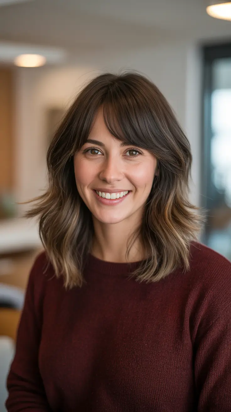 In my opinion, this would be among the most adaptable Ideas of brunettes in 2026. It is working in the case of growing out a shorter bob and it is working in the case of cut-off length because it is damaged and it is working in the case of you just want it to sound polished, but not aggressive. Most experts discuss the process of picture framing your face and lightly illuminating extremities, and this cut is biased towards that aspect. It is pleasant, hair that is easy to approach, which at times is precisely what we require.
