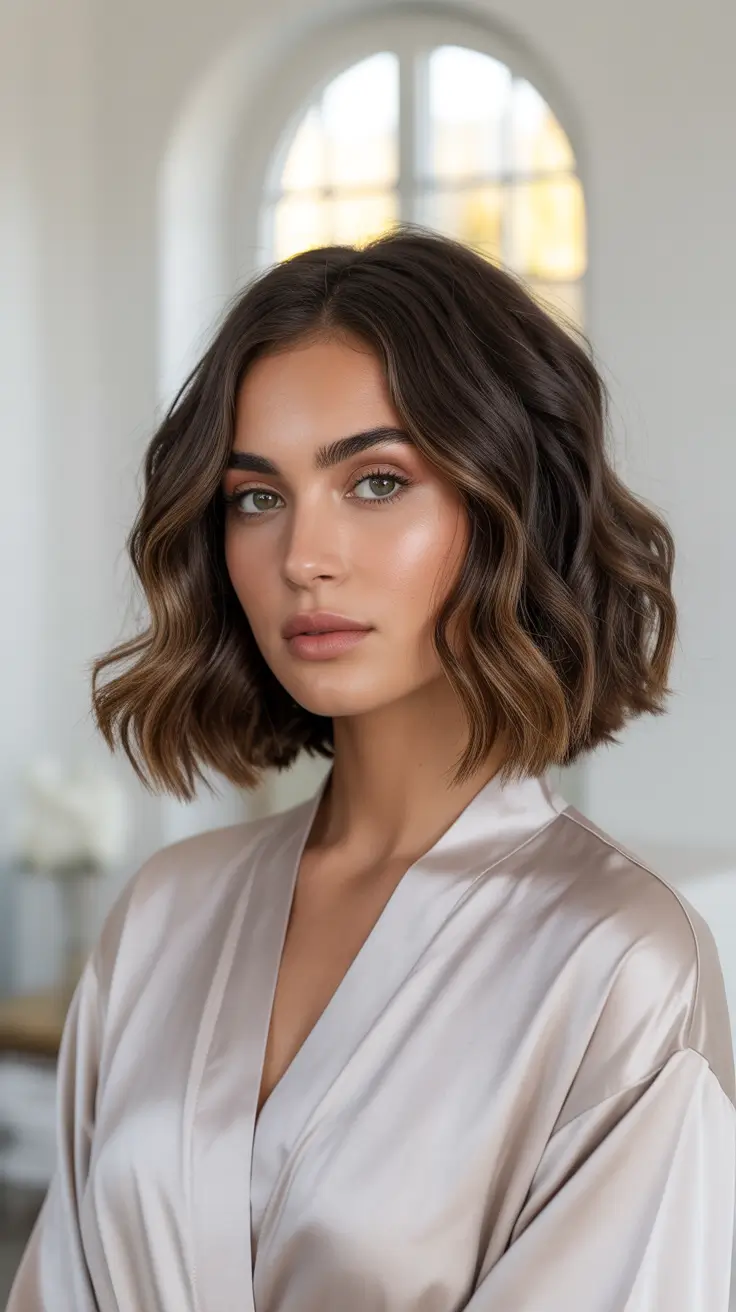 Soft Wavy Bob With Cool-Toned Brunette Shine