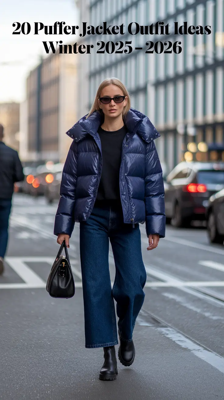City fall is a fashion runway of its own, and this outfit is that cool, comfortable swagger. The long navy coat is the center point here – it is structured yet flowing, whereas the striped turtleneck and high-waisted jeans provide it with that relaxed jeans comfort that we all know too well. The outfit is completed with the heeled booties and the oversized cream handbag that slightly winks at the classic elegance. It is adult street style and it is so right.