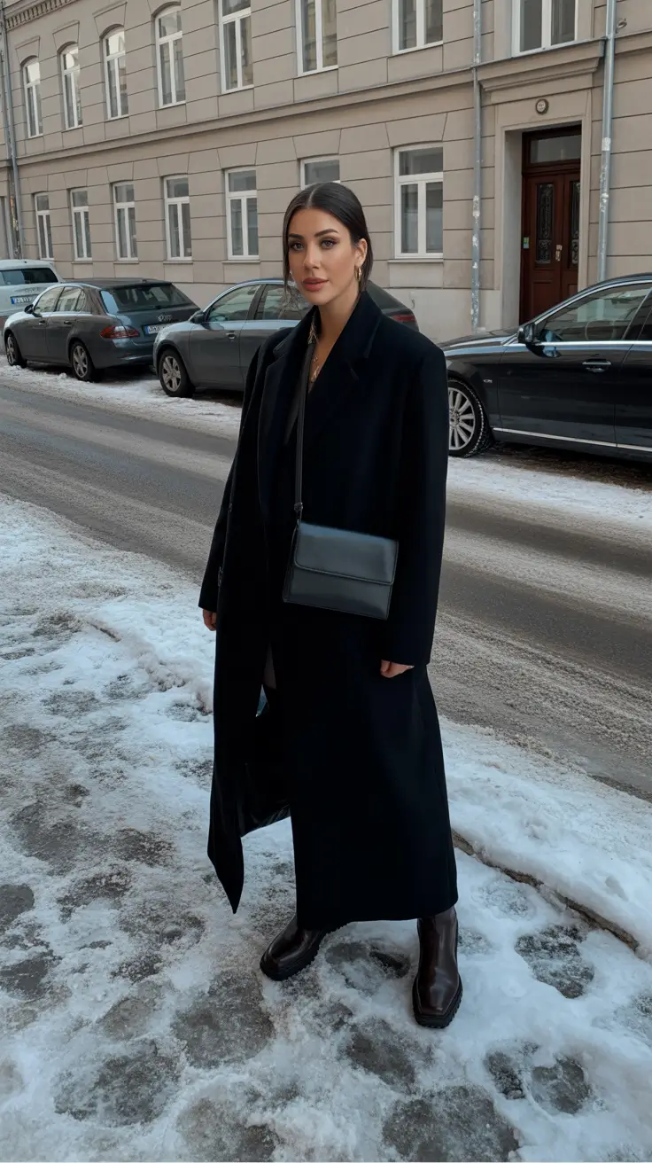 Head-to-toe black never goes wrong – a long tailored coat, fluid trousers and tall Chelsea boots with a square toe deliver quiet drama that does for meetings and late drinks. A compact crossbody adds structure across the column of black-which is why this combo sits in my personal hall of fame as winter fashion inspo women who love minimalism.