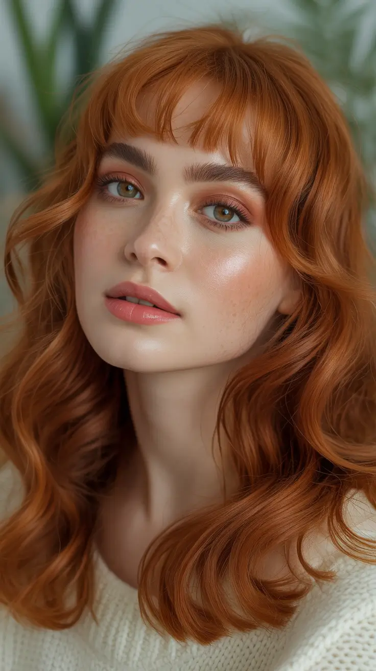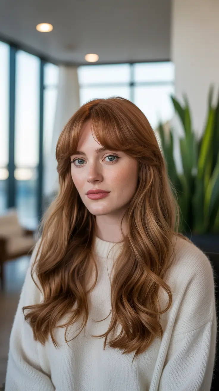 Curtain Bangs and Copper-Soft Auburn