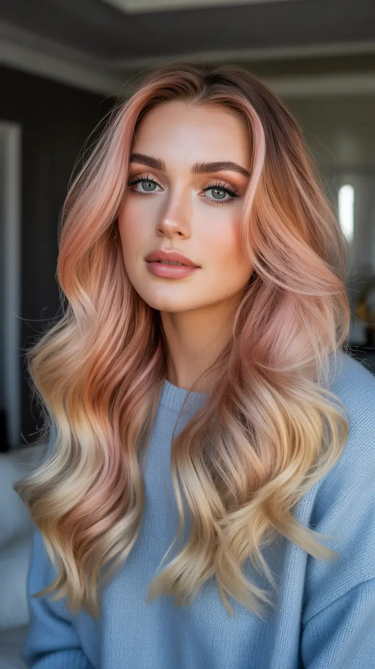This color is a touch more reminiscent of a real-life beauty filter soft saturated rose gold turns to buttery blonde ends, all cut in large, loose waves that reflect all the light. I adore the lack of harsh or neon pink but it is a sheer layer of a blush poison that lays across a warm base of blonde, which is precisely the style of playful twist that can be still used in real life. It won’t distress anyone to ask himself or herself this: did applying this tint to your hair make you feel younger or not?