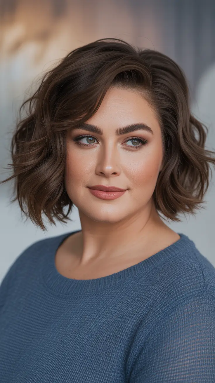 I recommend the bob with chin-length ends and soft waves for plus size women because the angle of the soft flip draws the eye downwards and helps to elongate and slim the face. If you have fine hair, you will want to have micro-slicing done inside the bob so it sits light and plush instead of collapsed.