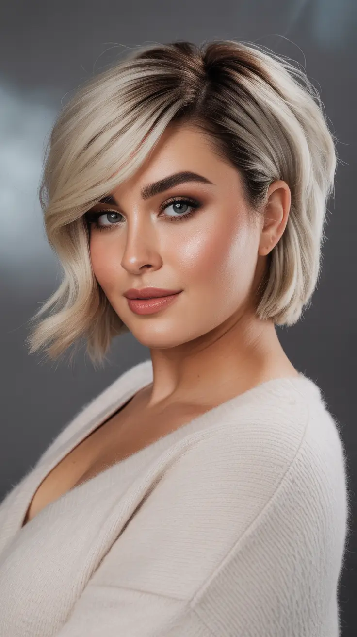 Here’s a polished Short bob with a creamy blonde ribboned over a natural root — bright where you want it, low maintenance where you need it. The length of the hair kisses the jawline, and the undulating bend creates a luxe, almost cashmere texture. It’s a classic short haircut women winter opt for when you want to create a frame around the face without lengthening the morning routine.