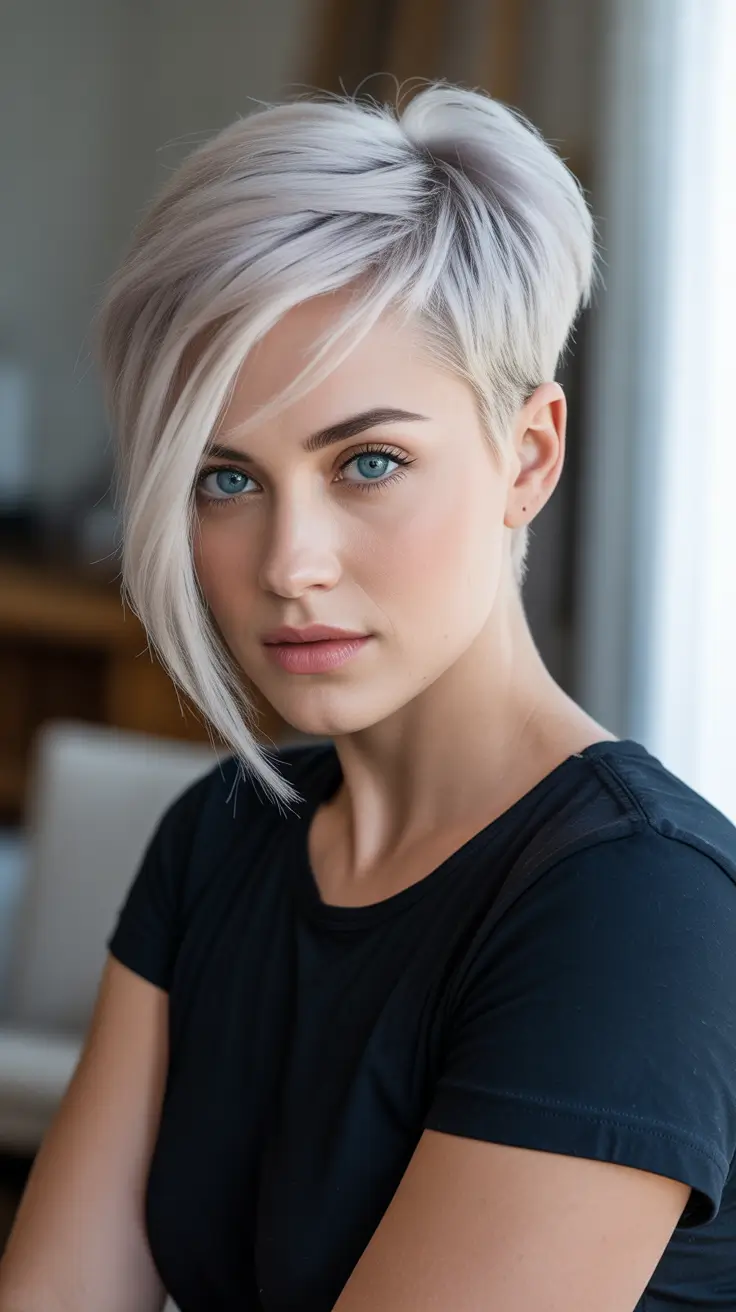 It is a cut that I would recommend to Women of all ages including short hair cuts of women above 50 years of age because they want something bold without being overly styled. It alludes to the pose of a Women wolf cut, in a very sharp, cropped version. Should your mood board be bombarded with icy, high-contrast Inspo and you are now willing to have a hairstyle truly leading the discussion, this silver pixie with cut off layers could be your big trend in 2026.