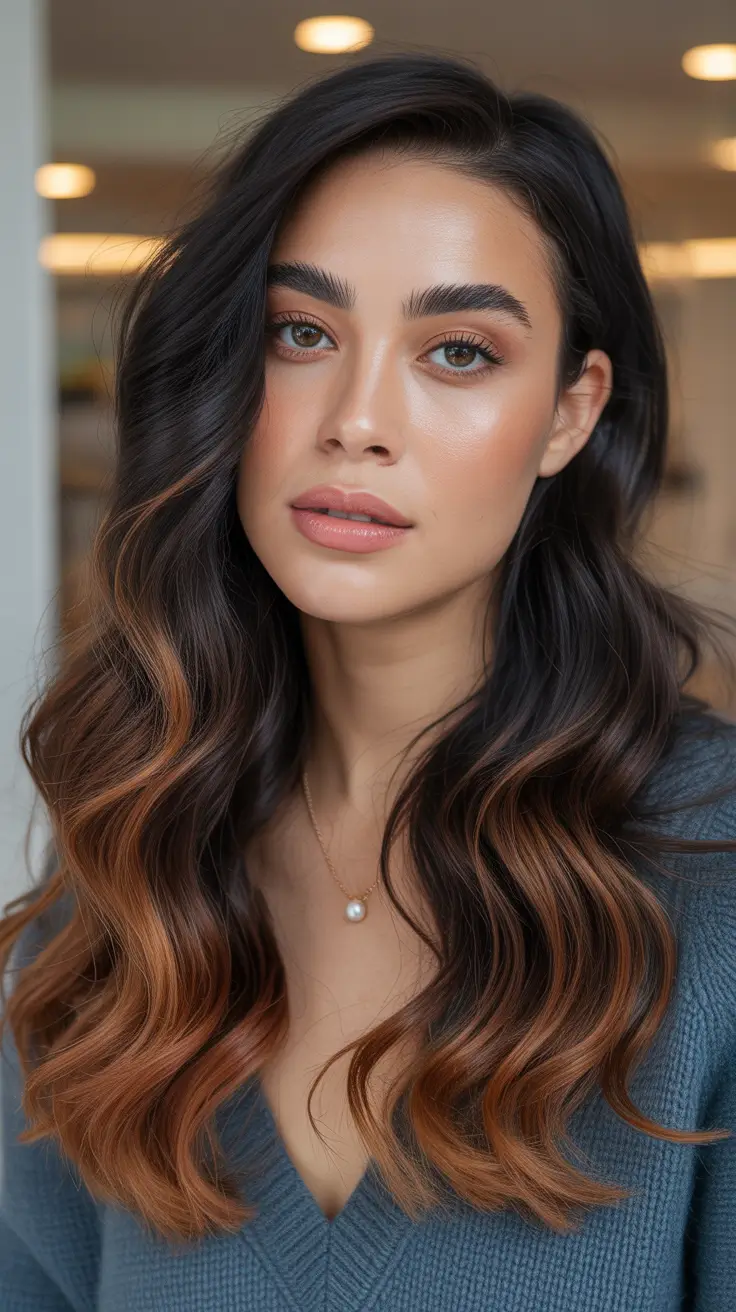 In times when I need drama, I layer it with ember-laden ribbons using an espresso foundation to make the waves to move at some angles. Not orange, not red, it is only toasted copper, which is like candlelight on dark hair. It is a more daring avenue in winter hair colors brunette balayage, and it can be both a luxe Ombre gesture, when you request your colorist to focus brightness at the ends.