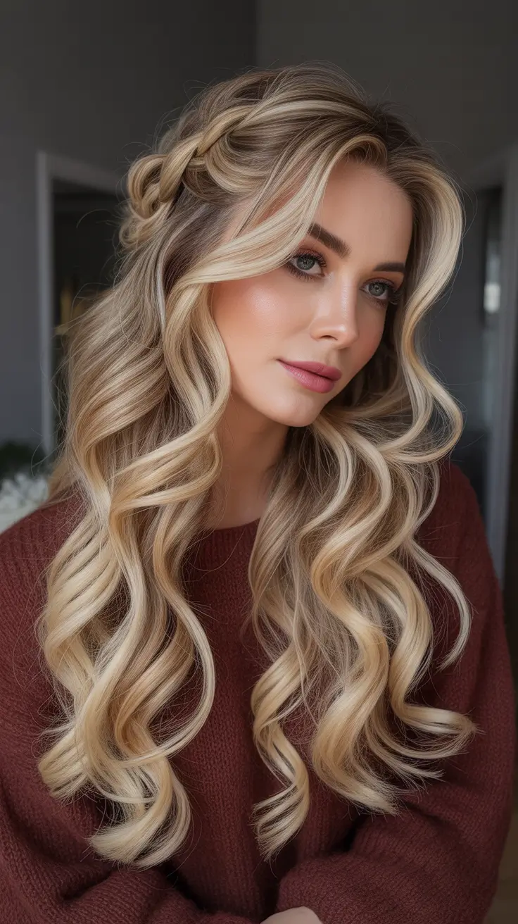 Winter Half-Up Ponytail with Airy Romantic Curls