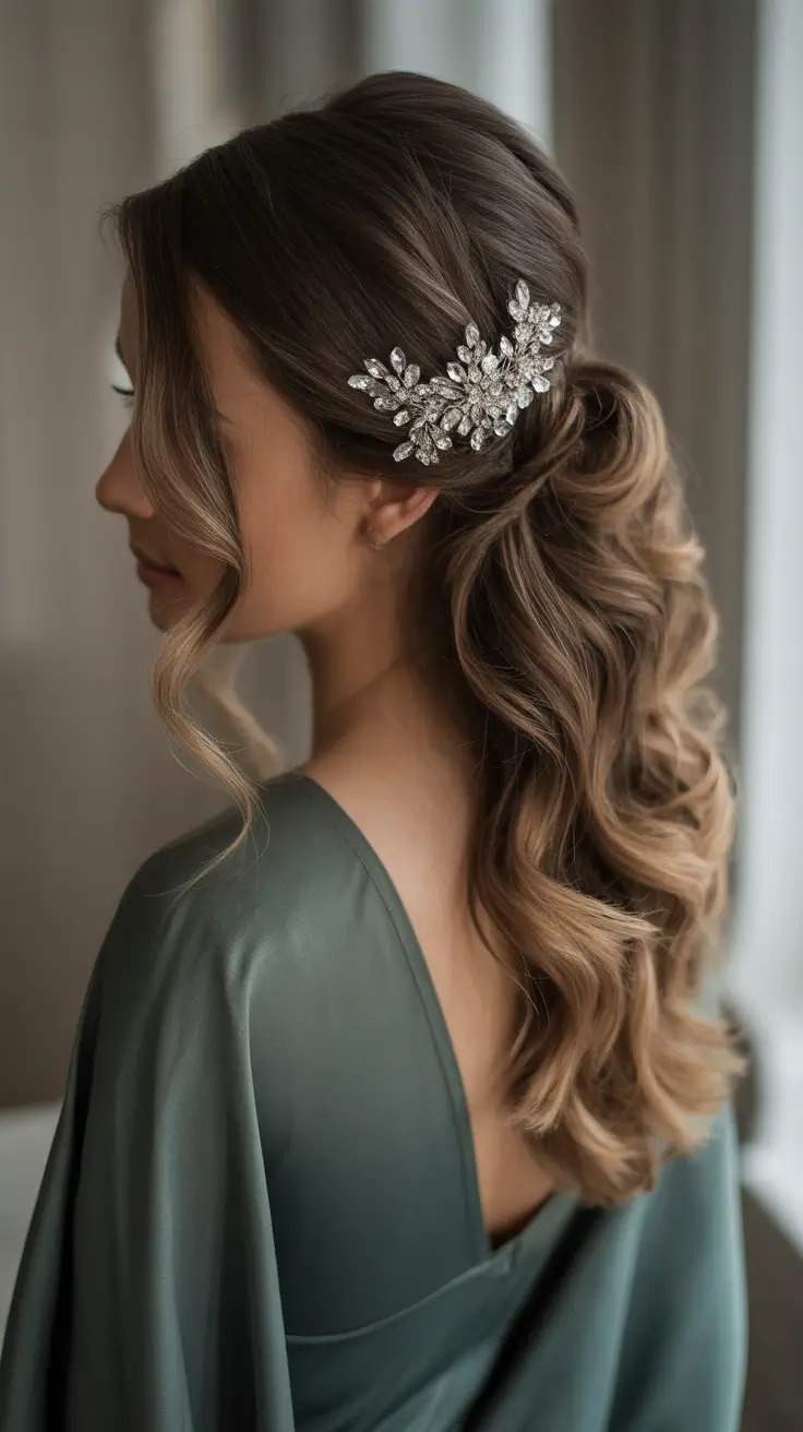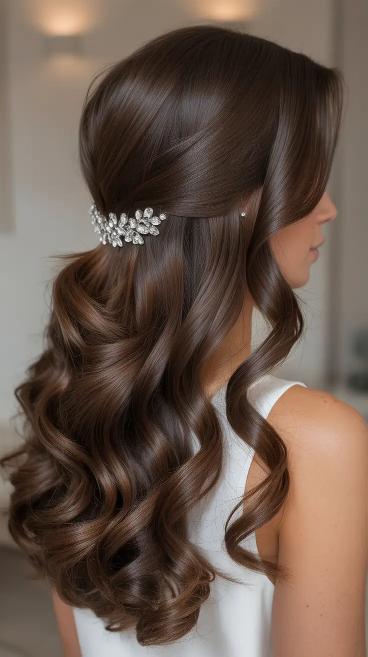Half-Up Smooth Gloss Curls with Crystal Comb