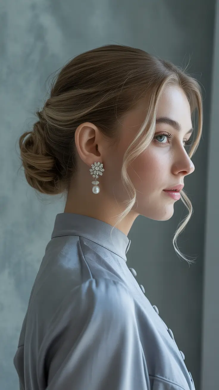 I personally find this style helpful in cases where the neckline is detailed or the earrings are extravagant. The style appears lovely on Medium and Short lengths that reach the nape, which makes it an optimal choice for winter formal hairstyles short hair that are more sophisticated in style. The soft tendrils help to accentuate the angles without concealing the cheekbones.