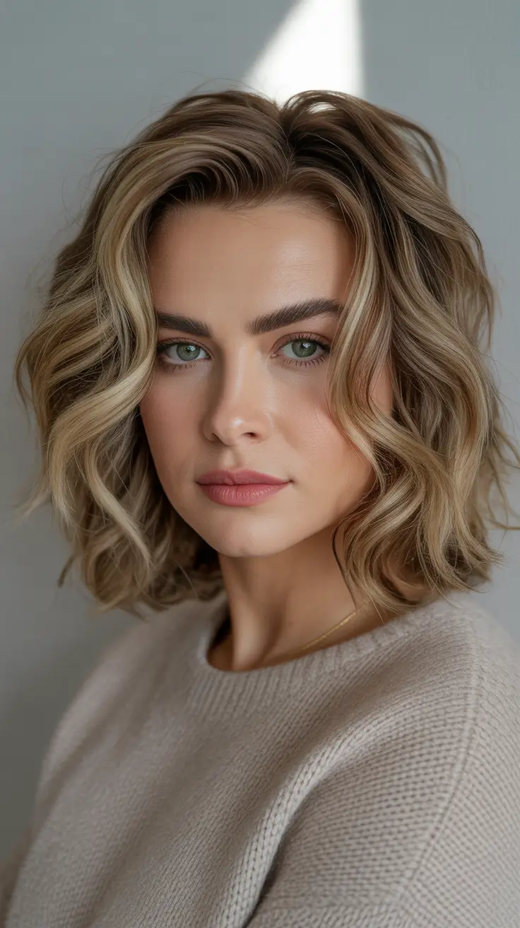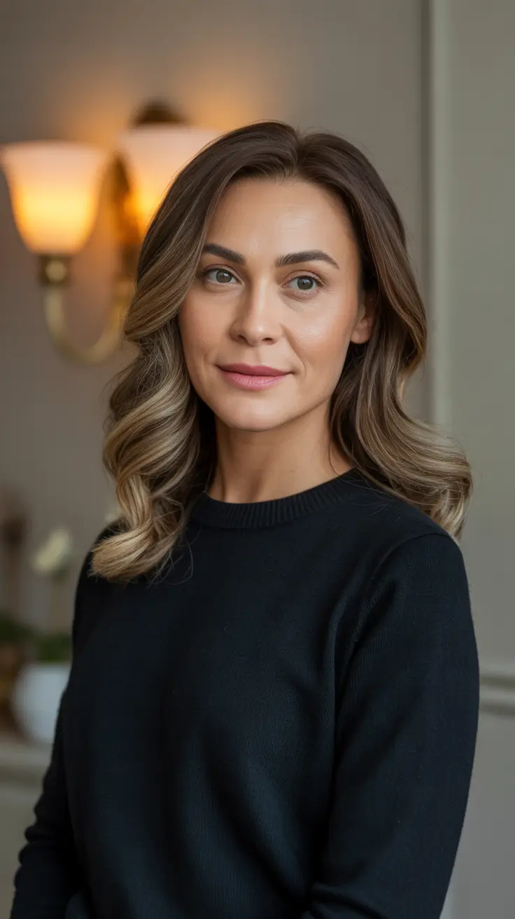 Here’s a shoulder-skim, cut, and layered just enough to encourage the Wavy look and movement around the face. Ribbon highlights frame the face and through the surface waves so even on grey days the light catches them. Winter medium haircuts wavy – touchable, swishy, and easy to restyle.
