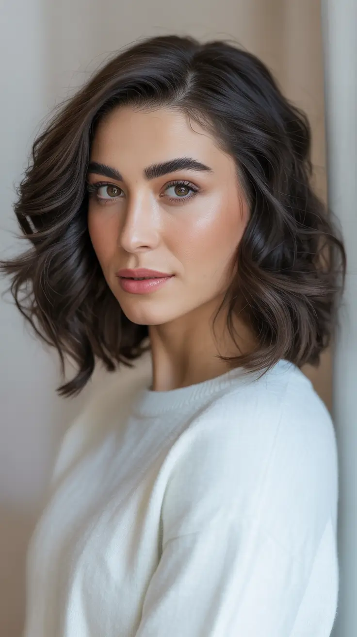 Picture an angled lob in rich, glossed cocoa brown, with soft waves lifting the face; there’s a bold romanticism to it. The volume, while winter haircuts medium wavy, is beautifully balanced and those edges add polish, so it’s also perfect for Straight hair smoothing or evening bends. The shape is an easy style for Women who prefer rich brunette, over bleach, hair.