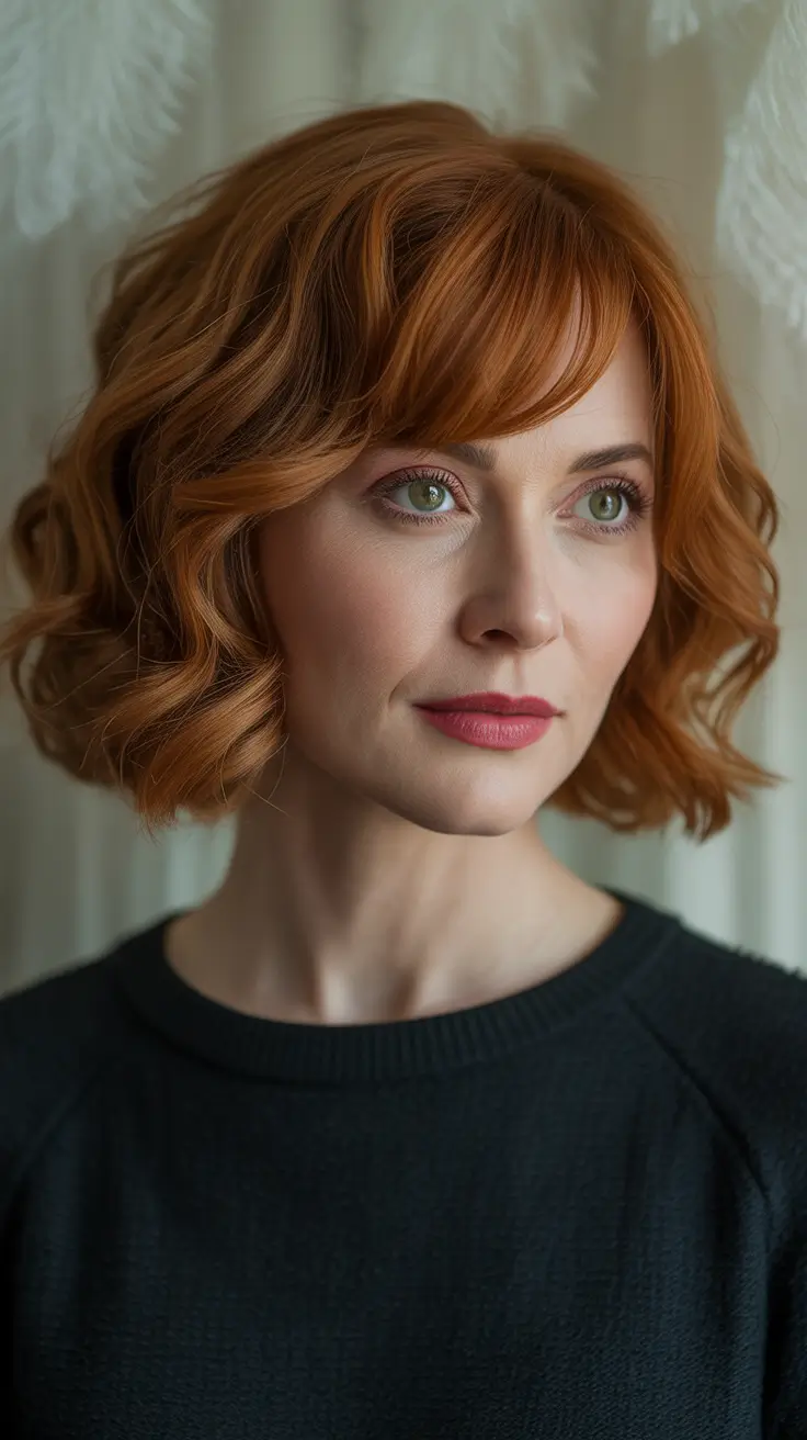 Short Bob with Soft Wavy Ends and Baby Fringe Bangs