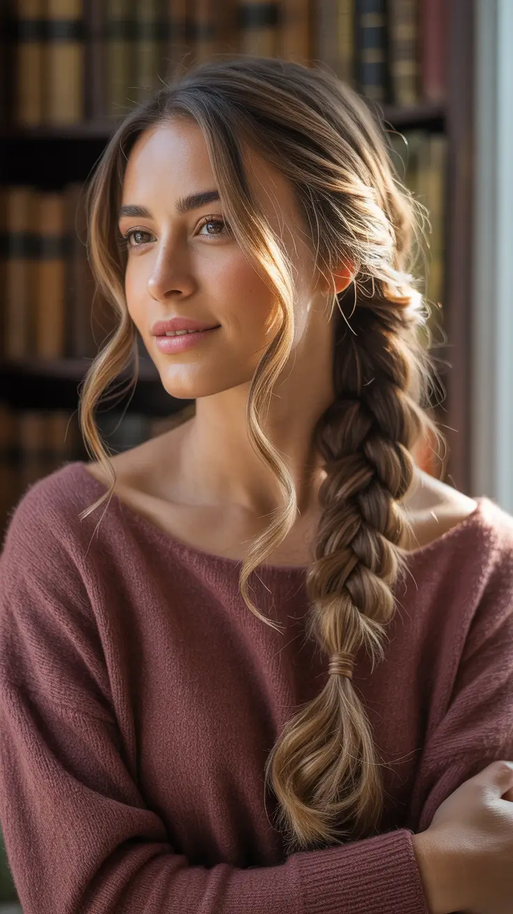 I call this my slow, coffee run braid – perfectly imperfect with soft layers escaping to create movement. It’s great on Mid or Long length cuts, so it falls under winter hairstyles with braids for Medium hair and below as well. The trick is to braid lower than you think so the crown still stays relaxed and the silhouette is modern.